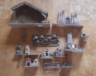 Conjunto de figuras y edificaciones para un belén navideño de gran tamaño. Las figuras de la última foto las regalo ( se les ha roto alguna extremidad o tienen daños grandes ) Tened en cuenta que tiene 40/50 años o incluso más este belén , no todas pero algunas de las figuras de arcilla presentan desgastes o algún desconche Se incluyen luces, papeles decorativos, papel en tiras tipo serpentina para adornarlo Vendo todo en 30 € A recoger en la zona de collado Villalba alpedrete