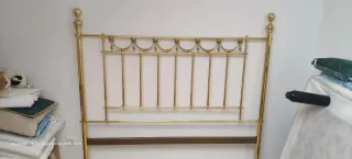 Elegante cabecero de latón con un diseño clásico que aportará un toque de distinción a tu dormitorio. - Estructura de latón pulido. - Diseño con barrotes verticales y detalles decorativos superiores. - Acabado dorado brillante.