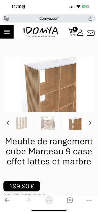 Mueble organizador con nueve compartimentos, ideal para cualquier estancia. - Diseño moderno con acabado imitación mármol en la parte superior. - Estructura de madera con un acabado cálido. - Dimensiones: 88 cm de alto, 30 cm de profundo y 88 cm de ancho.