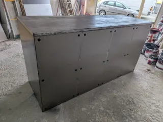 Mueble de estilo antiguo con un diseño robusto y detalles ornamentales. - Elaborado en madera de calidad. - Incorpora herrajes metálicos. - Presenta tallados decorativos en puertas y cajones.