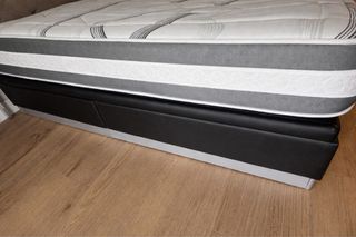 Se vende canapé de piel sintética de matrimonio con colchón, por cambio de tamaño, la piel sintética en perfecto estado. - Medidas: 150x200 cm. - Color del canapé: negro y gris. - Material del canapé: piel sintética Tiene algún toque en el zócalo como muestro en las fotos