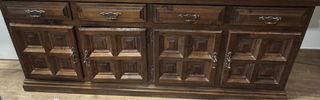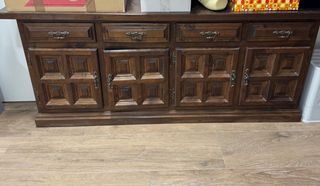 Mueble de estilo castellano con un diseño clásico y elegante. - Elaborado en madera maciza. - Acabado en tono marrón oscuro. - Puertas y cajones con tiradores ornamentados. - Paneles decorativos en las puertas.