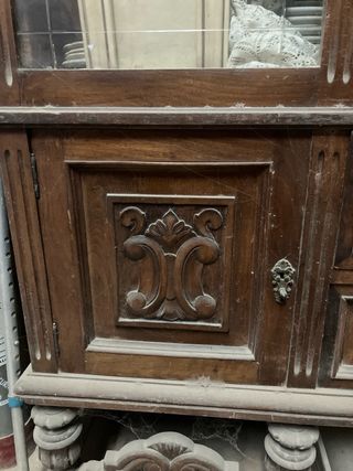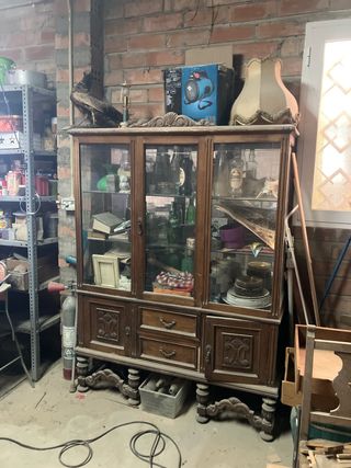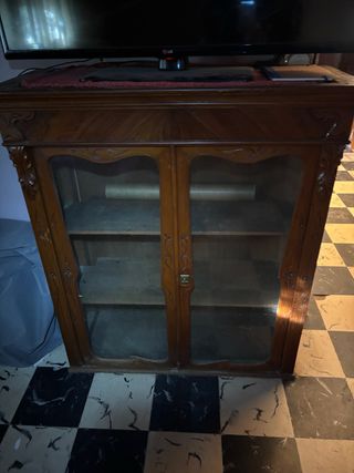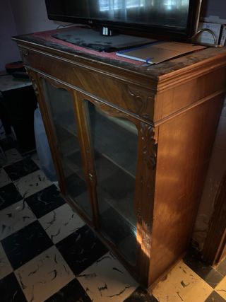 Mueble antiguo de madera y cristal
