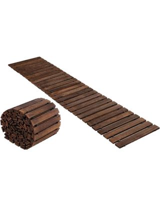 Camino de jardín de madera, ideal para crear senderos en exteriores. Es duradero y fácil de instalar. - Material: Madera - Longitud: 20ft/6m - Uso: Jardín, playa, césped