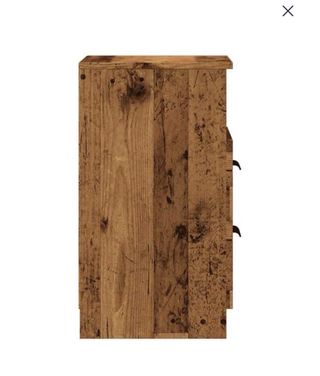 Conjunto de dos mesitas de noche con un diseño rústico y envejecido. - Fabricadas en madera de ingeniería. - Acabado en tonos marrones y negros. - Cajones con tiradores negros.