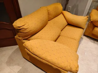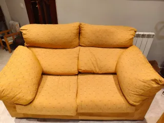 Sofá biplaza. - Tapicería de tela. - Color amarillo. - Cojines mullidos para mayor confort. Ubicacion Ptd/Quatre pilans. Lleida