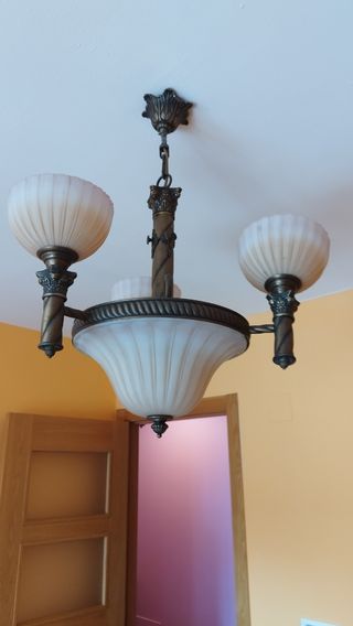 Lámpara de techo de bronce con 3 tulipas. 50 años