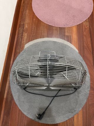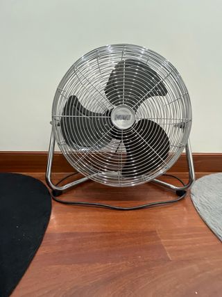 Ventilador con un diseño moderno y elegante. - Rejilla protectora de metal. - Base y estructura de metal. - Aspas de plástico. - 3 potencias