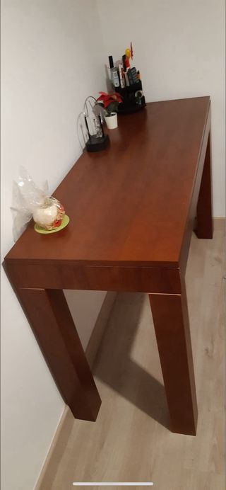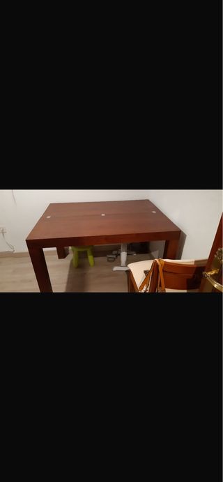 Cerrada de ancho mide 45cm. Elegante mesa de comedor con un acabado en madera oscura. Su diseño moderno se adapta a cualquier estilo de decoración. - Patas robustas para mayor estabilidad. - Superficie lisa y fácil de limpiar.