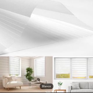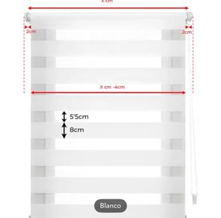 Estor enrollable de tipo noche y día con sistema de fácil instalación. - Mecanismo Easyfix. - Tejido de alta calidad. - 110 ancho x 130 alto NUEVO, NUNCA INSTALADO.