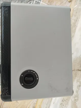 Estufa de gas portátil con un diseño moderno y funcional. Ideal para calentar espacios de forma eficiente. - Estructura principal en metal. - Detalles en plástico. - Ruedas para fácil desplazamiento.