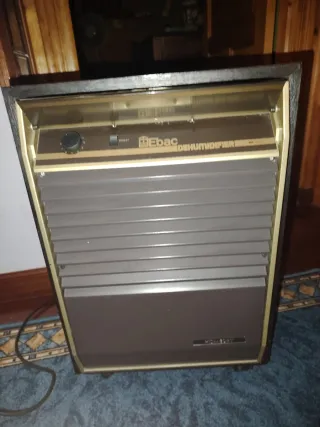 Deshumidificador vintage de la marca Ebac, modelo Homedry. - Diseño clásico en tonos marrones y dorados. - Panel frontal con rejilla y controles. - Unidad de sobremesa. De madera con ruedas.... Funciona de maravilla.... Muy potente, tiene mucho rendimiento.... No se fabrican aparatos así ya.