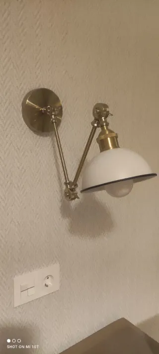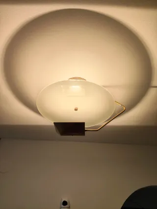 Elegante aplique de pared de la marca SKLUM. Su diseño combina un acabado metálico dorado con una pantalla blanca. - Pantalla de cristal. - Estructura de metal.