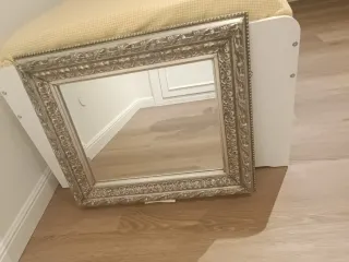 Elegante espejo con un marco detallado que aporta un toque clásico a cualquier espacio. - Marco con diseño ornamental. - Acabado en tono plata envejecida.