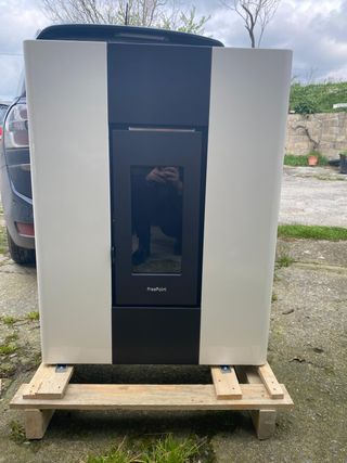 Estufa de pellets pasillera, estanca, con potencua nominal de 7kw, color blanco, brasero de hierro fundido (combustion eficiente y duradera). calienta superfiese de 50 a 100m2. CARACTERISTICAS PRINCIPALES: - Potencia mínima y máxima: 2,5 -7kw. - Rendimiento: 93% - Clase energética: A+ - Capacidad de la tolva: 12kgs - Dimensiones: 72.7 cm de ancho x 27.4 cm de profundidad y 94.5 de alto - Peso neto: 63.5kg - Materiales: Acero con brasero de fundición. - Salida de humos: trasera, lateral o superior. Adaptable NO A SIDO NUNCA USADA. NUEVA!!