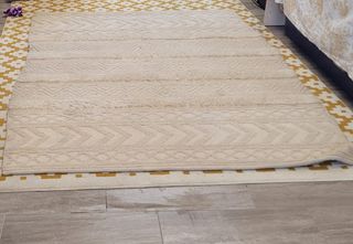 Alfombra clara de estilo bereber / boho, con relieve y textura muy agradable al tacto. Diseño neutro y atemporal, ideal para aportar calidez y luminosidad a cualquier estancia. 📏 Medidas aproximadas: 2,00 x 2,30 m 🧵 Textura: suave, con zonas de relieve 🧼 Estado: lavada ⚠️ Importante: presenta manchas amarillentas discretas, propias del uso/guardado, visibles en las fotos. No afectan al uso ni a la estética general de la alfombra. El precio está ajustado teniendo en cuenta estas marcas: costó 160 € y se vende por aproximadamente la mitad del precio original. Perfecta para salón, dormitorio o despacho, combina muy bien con esti