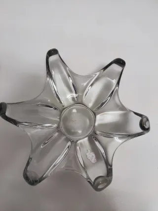 Elegante centro de mesa de cristal con un diseño único. - Forma estrellada con 7 puntas. - Acabado transparente. - Material de cristal de alta calidad. Pesa 2 kg y mide 25 cm