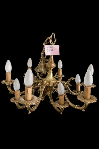 Lámpara de araña de cristal y metal dorado