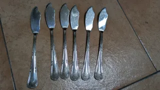 Conjunto de seis cuchillos con diseño deportivo. - Seis unidades incluidas. - Mango con detalles grabados. - Hojas metálicas plateadas.