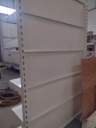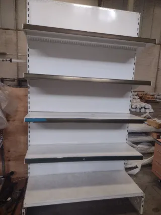 2 módulos contiguos de estantería de supermercado de metal, ideal para organizar productos. - Estructura robusta. - cinco baldas para exhibición. - traseras incluidas.