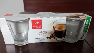 Set de 6 vasos de cristal Bormioli Rocco. (3 sin caja) - Diseño moderno y elegante. - Ideales para café o espresso. - Aptos para lavavajillas.