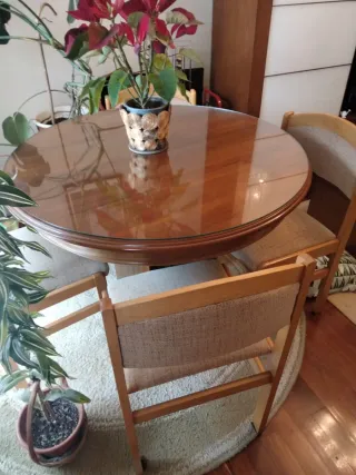Mesa redonda extensible con 4 sillas
