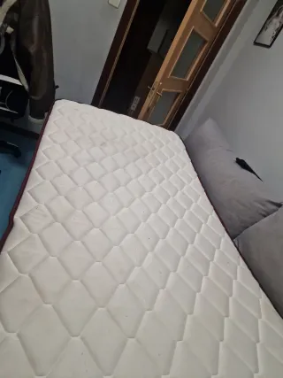 Somier de 135cm con estructura metálica y láminas de madera. - Medidas: 90x180cm - Materiales: Metal, madera y plástico. Se ha usado muy poco. No tiene patas ni agujeros para ello pero se podrian acoplar fácilmente.