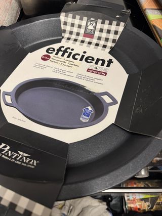 Paellera BRA Efficient de 32 cm, ideal para preparar deliciosas paellas y otros arroces. - Fabricada en aluminio fundido. - Fondo de gran espesor para una distribución uniforme del calor. - Apta para inducción. - Revestimiento antiadherente Teflon Platinum. - Diseño de 5 raciones.