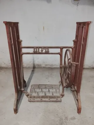 Base de hierro para máquina de coser de la marca Alfa. Un elemento robusto y con un diseño clásico. - Fabricada en metal. - Color marrón rojizo.