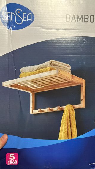 Toallero fabricado en bambu. Cuenta con una balda superior y varios colgadores. - Diseño de balda con listones. - Colgadores integrados en la parte inferior.
