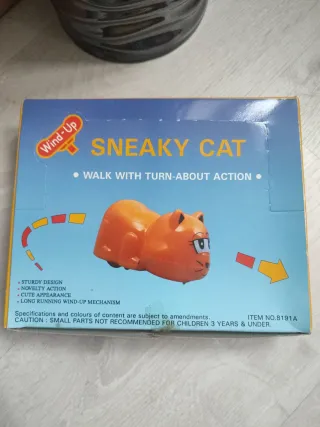Divertido juguete Sneaky Cat que camina y gira. De los 90 con su caja original. Ideal para coleccionista. - Diseño robusto. - Acción novedosa. - Apariencia simpática. - Mecanismo de cuerda de larga duración.
