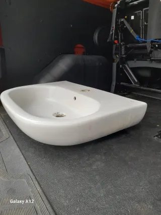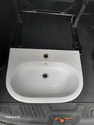 Lavabo de diseño moderno y elegante. - Forma angular. - Dos orificios para grifería y desagüe.