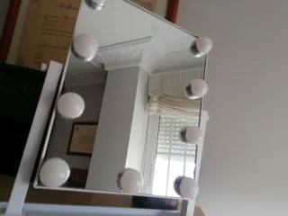 Espejo de tocador con un diseño moderno y práctico, ideal para tu espacio personal. - Iluminación LED integrada. - Marco elegante. - Base estable.