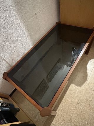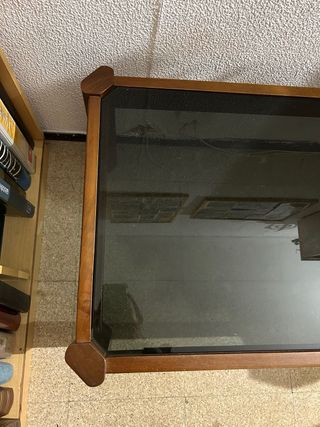 Mesa auxiliar antigua madera y cristal