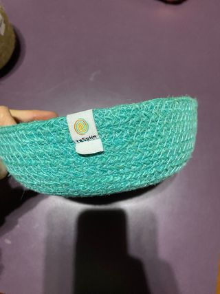 Conjunto de dos cestas decorativas de yute. Cesta de yute profunda. Versión en acabado color. Estas cestas son una forma perfecta de presentar piezas sueltas o como sistema de organizar y clasificar el material no estructurado. Ayuda a preparar el juego y permite mantener cada pieza en su lugar, fomentando la autonomía de niños y niñas. Material especialmente indicado para juego libre. Tamaño grande: Ø 15cm * 4 cm de alto Tamaño pequeña: Ø 11 x 8,5 cm