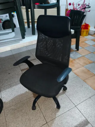 Silla de oficina con un diseño moderno y cómodo. - Respaldo de malla transpirable. - Asiento acolchado. - Brazos ajustables. - Base giratoria con ruedas.