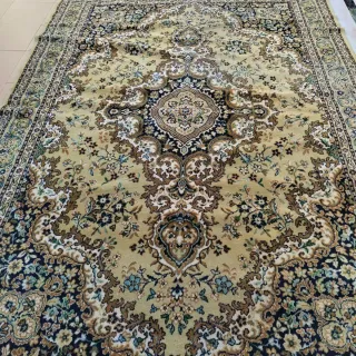 Alfombra de tela beige y marrón