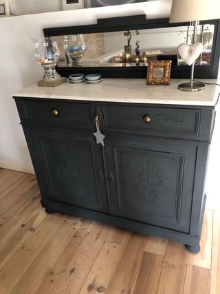 vendo aparador antiguo con espejo y marmol, restaurado y pintado en chalky, (sin carcoma) muy bien cuidado.