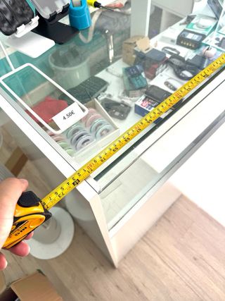Mostrador expositor con vitrina para exhibir productos. - Estructura principal en color blanco. - Baldas y cajon con llave para almacenamiento - Superficie de exhibición de cristal. - Medidas 180cm ancho x 50cm profundo x 110 alto - Pvp Nuevo 550€ precio ahora 299€ como nuevo. Perfecto para convinar con otros muebles en mi perfil #mueble #expositor #gondola #mostrador #vitrina