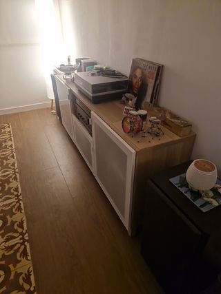 POR CUESTIONES DE MUDANZA FUERA DEL PAIS, VENDEMOS TODO! Precioso y elegante aparador de TV de IKEA, en excelentes condiciones. Menos de 1 año de uso. Dos puertas laterales y un cajónprofundo en el centro. - Diseño moderno y funcional. - Combina perfectamente madera y blanco. - Ofrece amplio espacio de almacenaje.