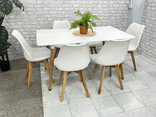 Mesa Comedor Blanca con 6 Sillas Nórdicas
