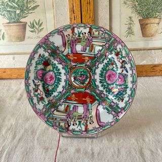 Plato decorativo de porcelana china de Macao (Macau), hand decorated (decorado a mano), con escenas tradicionales chinas con personajes, flores, aves y motivos vegetales. Estilo Familia Rosa, colores vivos en rosa, verde, rojo y dorados. Pieza típica de porcelana de exportación. Marcado en la base: “HAND DECORATED” (ver foto). 📏 Dimensiones: Diámetro aprox. 26 cm. 📌 Estado: Muy buen estado general. Sin grietas ni roturas. Leves señales normales del tiempo. 🖼️ Ideal para: Coleccionistas, decoración oriental, plato de pared, vitrina o aparador. Pieza muy decorativa y llamativa. plato porcelana china macao macau familia rosa ha