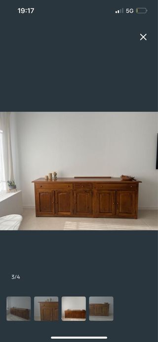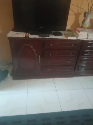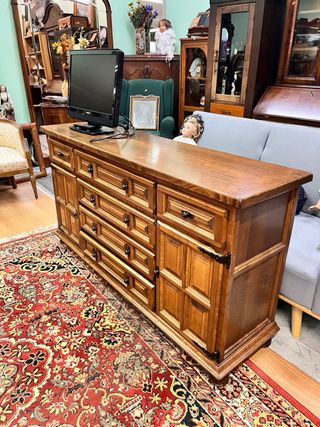 Mueble aparador de madera con un diseño clásico y elegante. Cuenta con varios cajones y puertas con lamas. - Amplio espacio de almacenamiento. - Tiradores redondos. - Aparador/comoda de 150 cm de largo, 33cm de ancho y 65 cm de alto su precio $ 200€ Estoy en el barrio de la concepcion.
