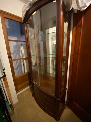 ¡¡¡Precio negociable ya que me urge deshacerme!!! Elegante vitrina aparador con un diseño clásico y acabados en tonos madera y dorado. - Puertas de cristal con detalles. - Amplios estantes para exhibición. - Cajones inferiores para almacenamiento. Solo la parte superior, súper bien cuidado mueble de mucha calidad, estupendo para darle un nuevo aire pintando de colores o para casas más clásicas!! SOLO RECOGIDA EN DOMICILIO ANTES DE DIA 22/02 No dudes en preguntar cualquier cosa