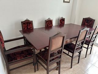 Mesa Isabelina con 6 Sillas, 2 Butacas y aparador