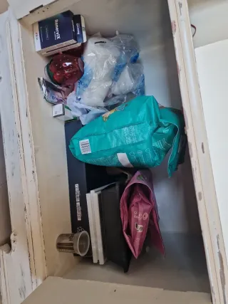 Mueble aparador de madera con un diseño clásico y funcional. - Amplio espacio de almacenamiento. - Puertas con lamas. - Cajones con tiradores. - Estantes interiores. Tiene una puerta lijada porque pensaba haber sacado esas lanas y poner rejilla, pero al final cambié de plan. (Foto de portada) Uno más pequeño lo pinté y queda genial. Si lo quieres pintado 100€ más..