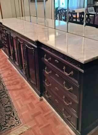 Aparador de madera con espejo y mármol