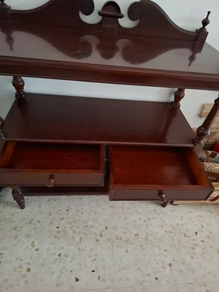 Mueble aparador clásico, en madera maciza color caoba 107 cm ancho 47 cm profundidad 100 cm altura + 16 cm del adorno, que se puede quitar