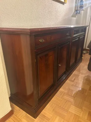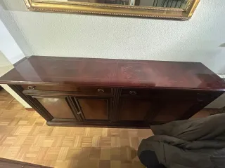 Mueble aparador de madera con un diseño clásico y elegante. Cuenta con varios cajones y puertas con lamas. - Amplio espacio de almacenamiento. - Tiradores redondos. - Aparador/comoda de 150 cm de largo, 33cm de ancho y 65 cm de alto su precio $ 200€ Estoy en el barrio de la concepcion.