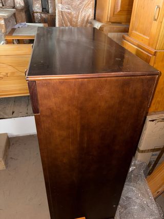 Bonito aparador de madera maciza, ideal para cualquier estancia. Tiene un diseño clásico y elegante. - Medidas: (Añadir medidas si se conocen) - Cuatro cajones y dos puertas con espacioso almacenaje. - Color marrón cálido y acabado pulido.